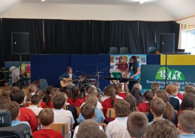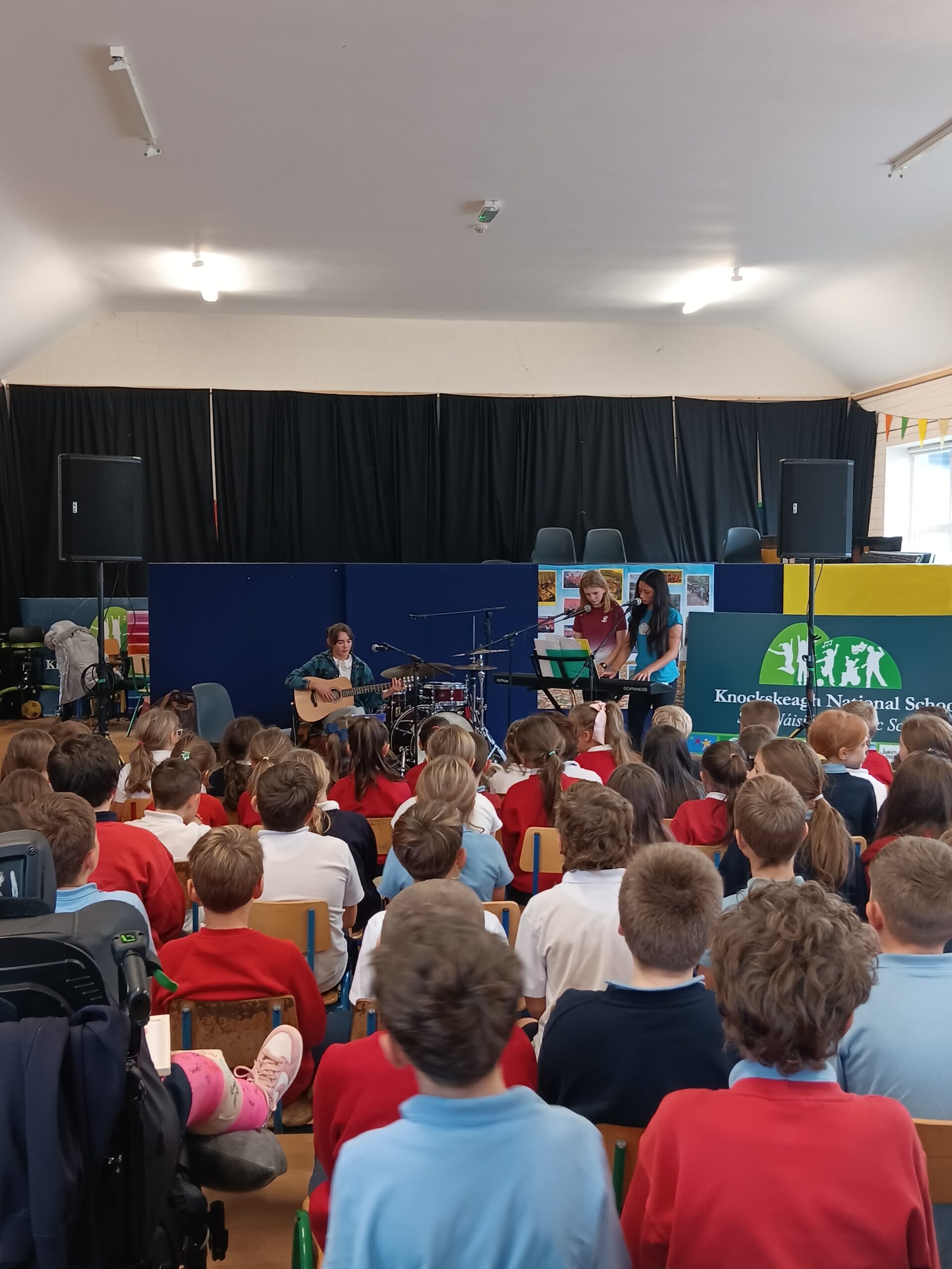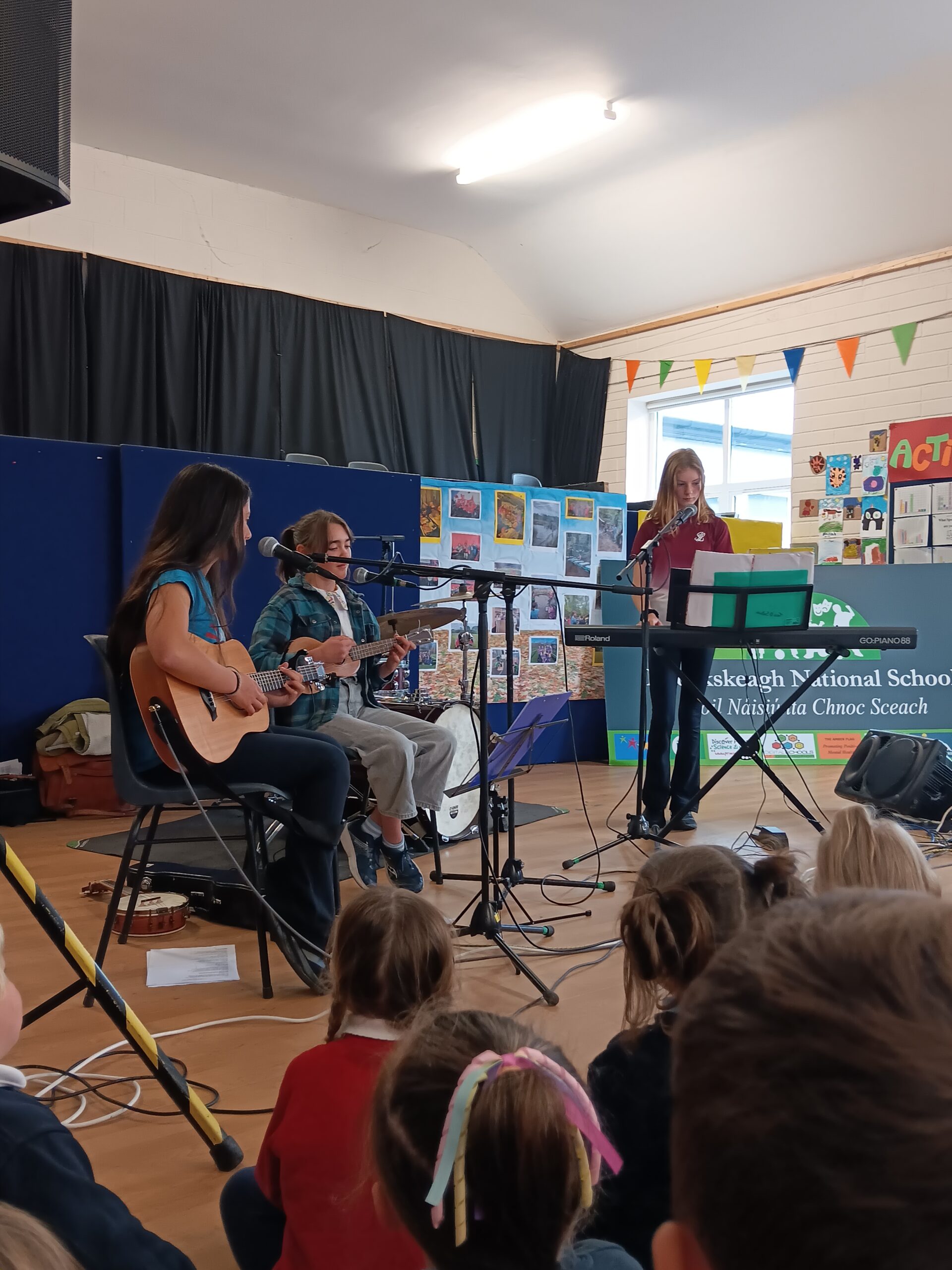 On Friday, 19th September, Knockskeagh had the privilege of welcoming back three past pupils to perform a full set of home-written songs. as part of the Clonakilty International Guitar Festival. Muirne, Lillia and Tess formed their band when they were in 6th Class in Knockskeagh and have continued to grow in their musical strengths over the last few months. 🎶